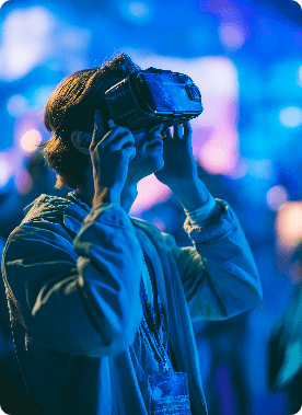 A Realidade Virtual cria ambientes digitais em 360º onde o público se conecta com a marca de uma forma mais aprofundada. Usada em eventos, ativações e treinamentos, a VR transforma a experiência em algo lúdico e memorável.
